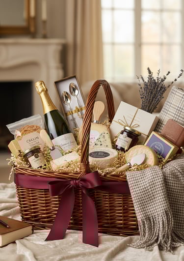 Bespoke luxury gift baskets, meticulously curated for life's most meaningful moments